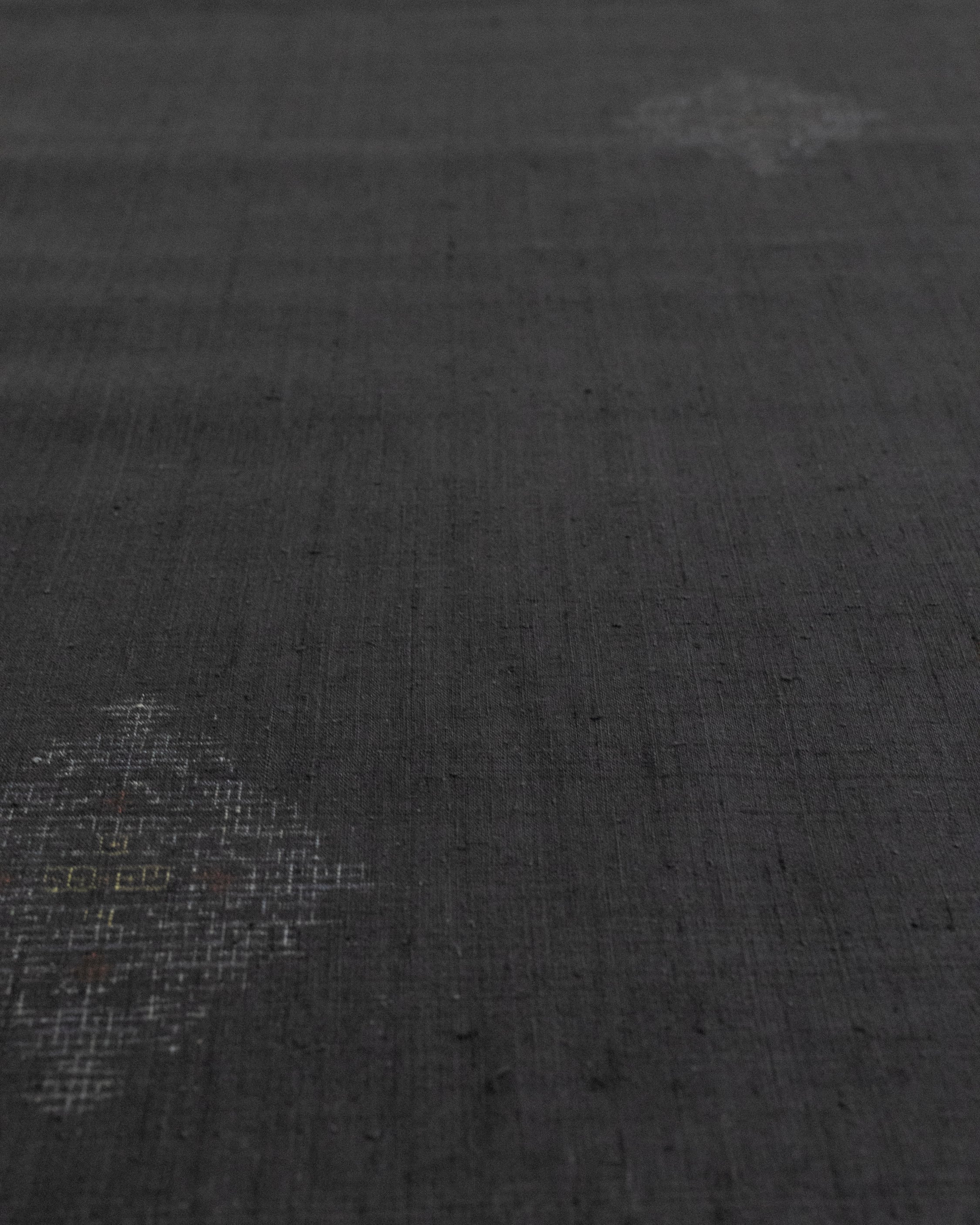 糸味も良く、軽く柔らかな羊羹色の紬地には、