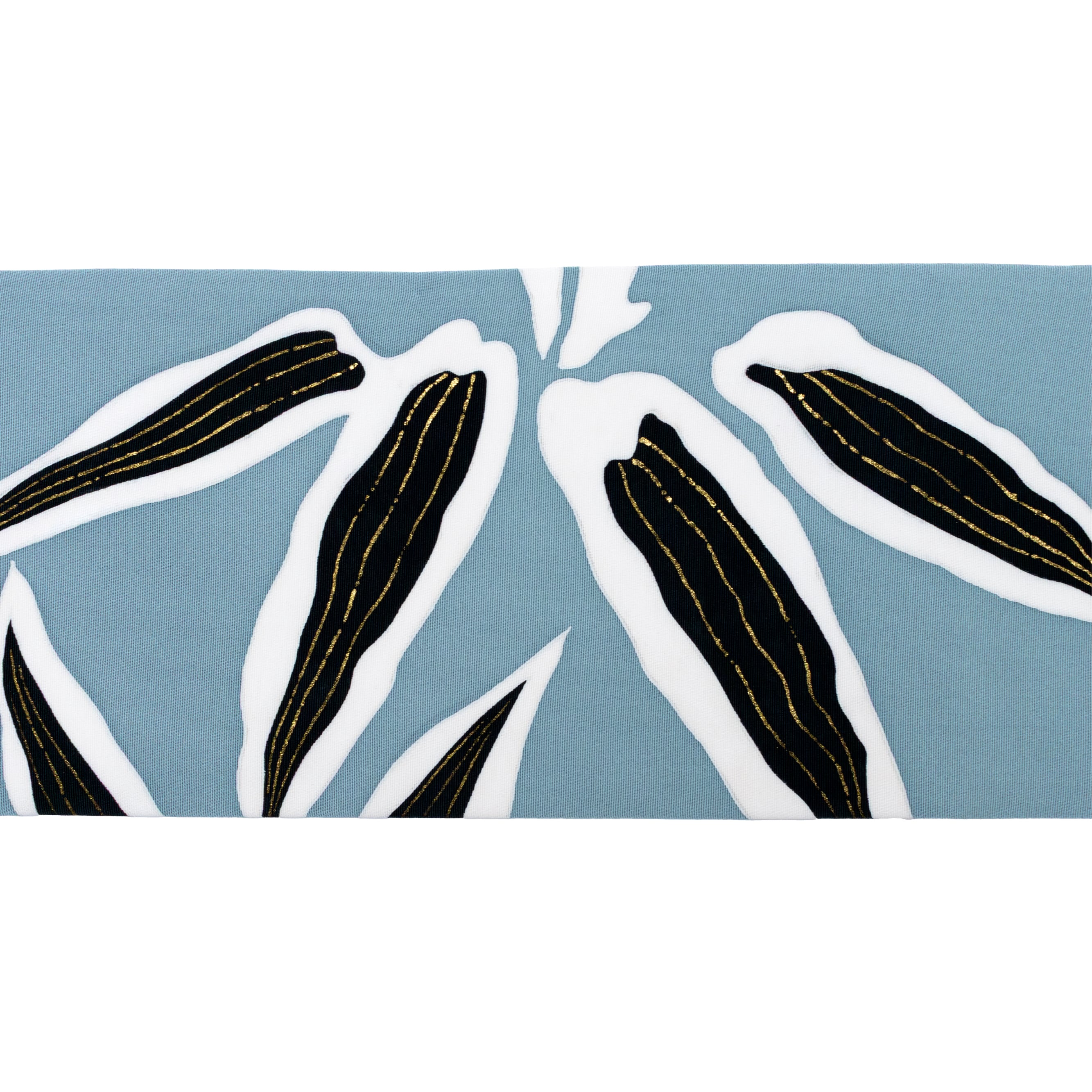 白と黒笹の葉に薄く金で手描き線が描かれた