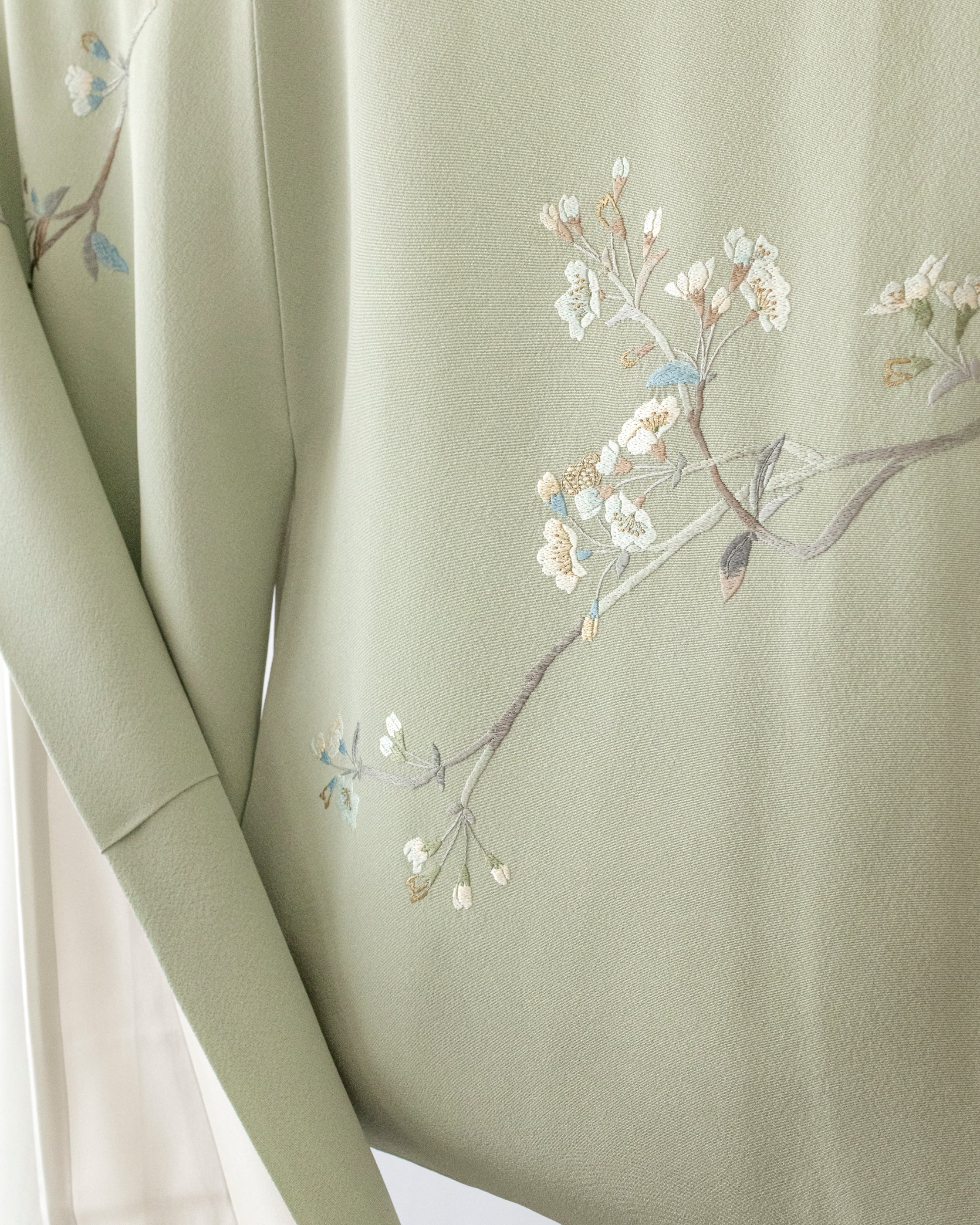 刺繍 メジロの色 山鳩色(濃い緑系の色)