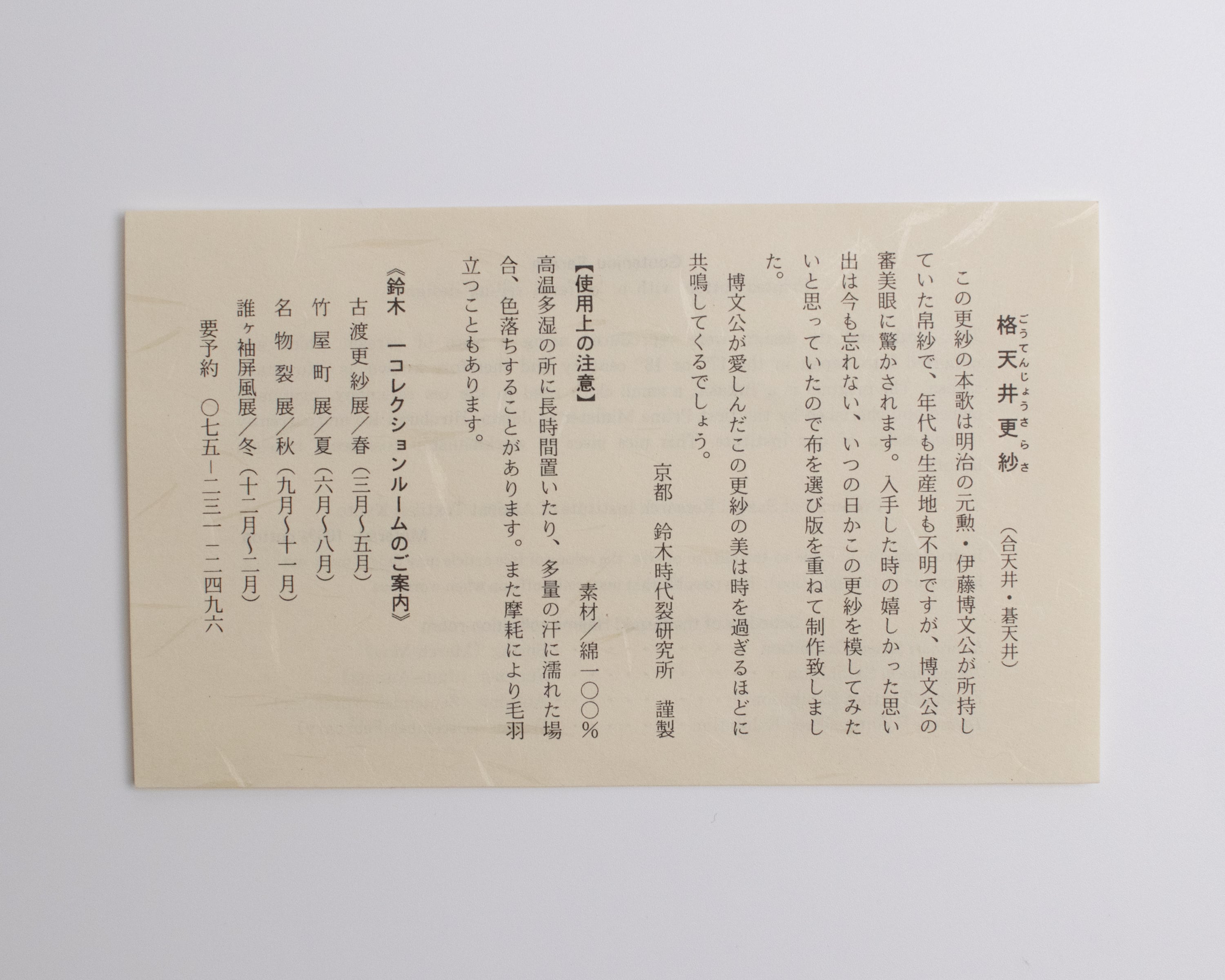 帛紗から復刻した「格天井更紗」が染められております。