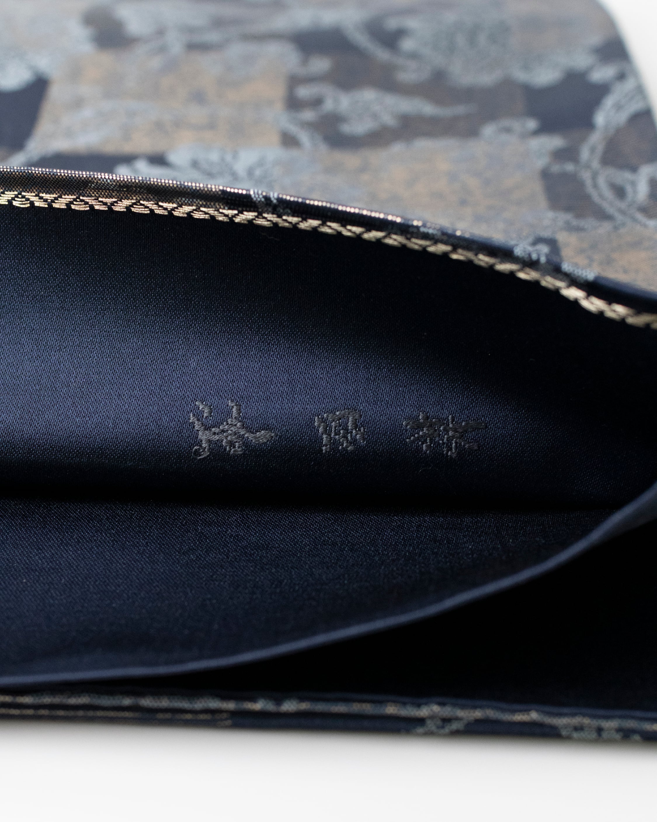 しっかりとした打ち込みの良い濃藍の織地には、