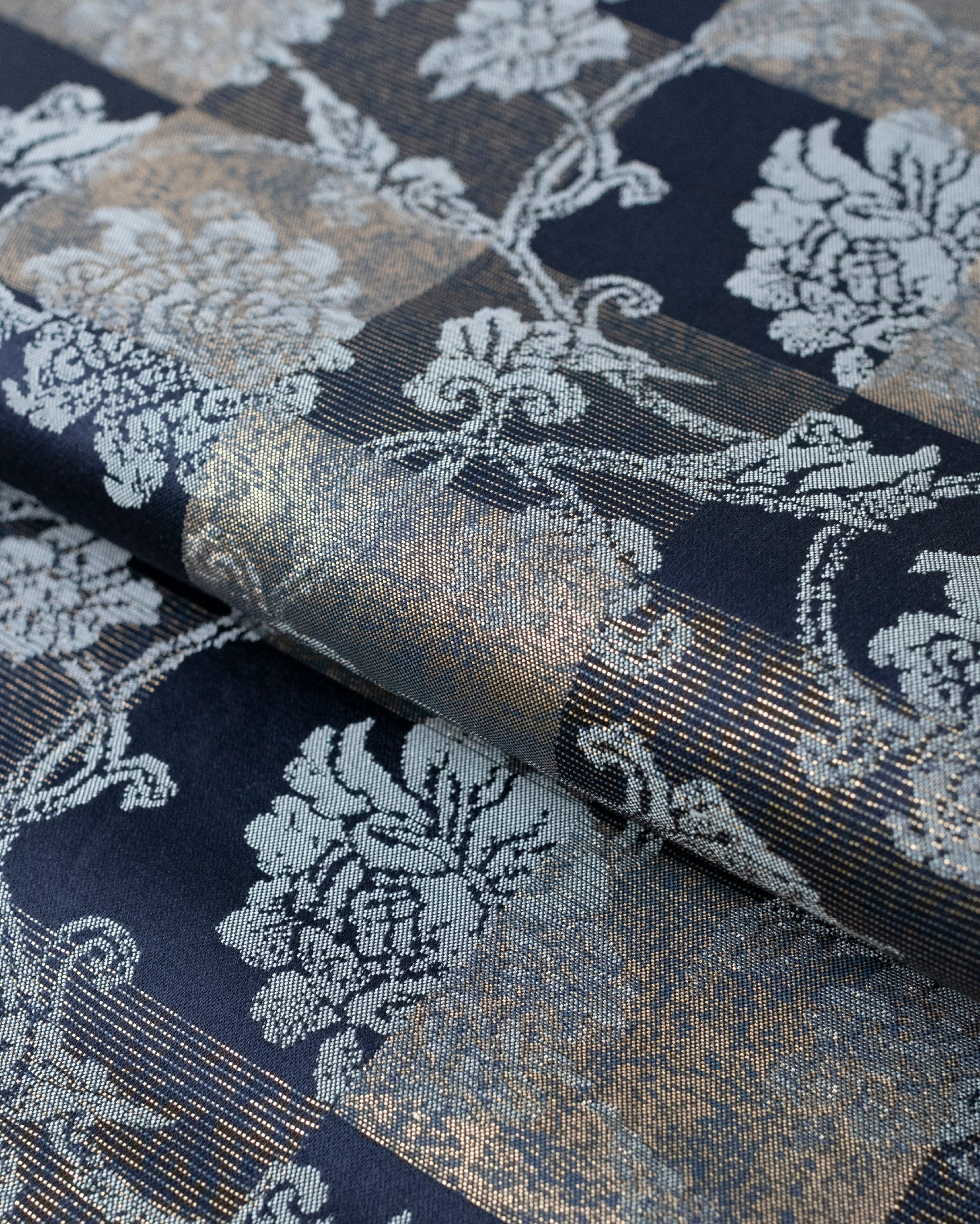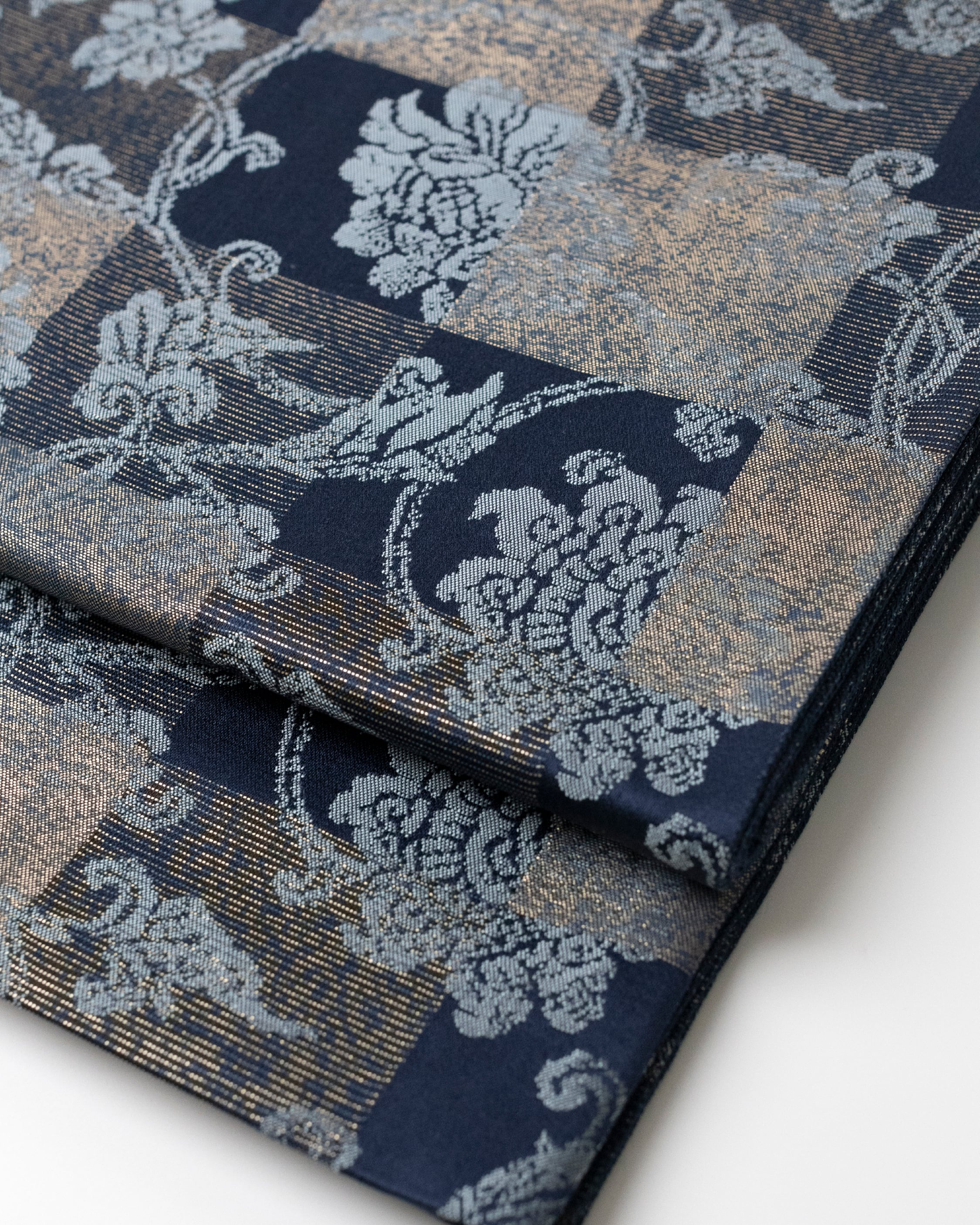 その上には、金糸を使って、掠れた様な風合いなどで市松模様が織られた洛風林製の袋帯です。