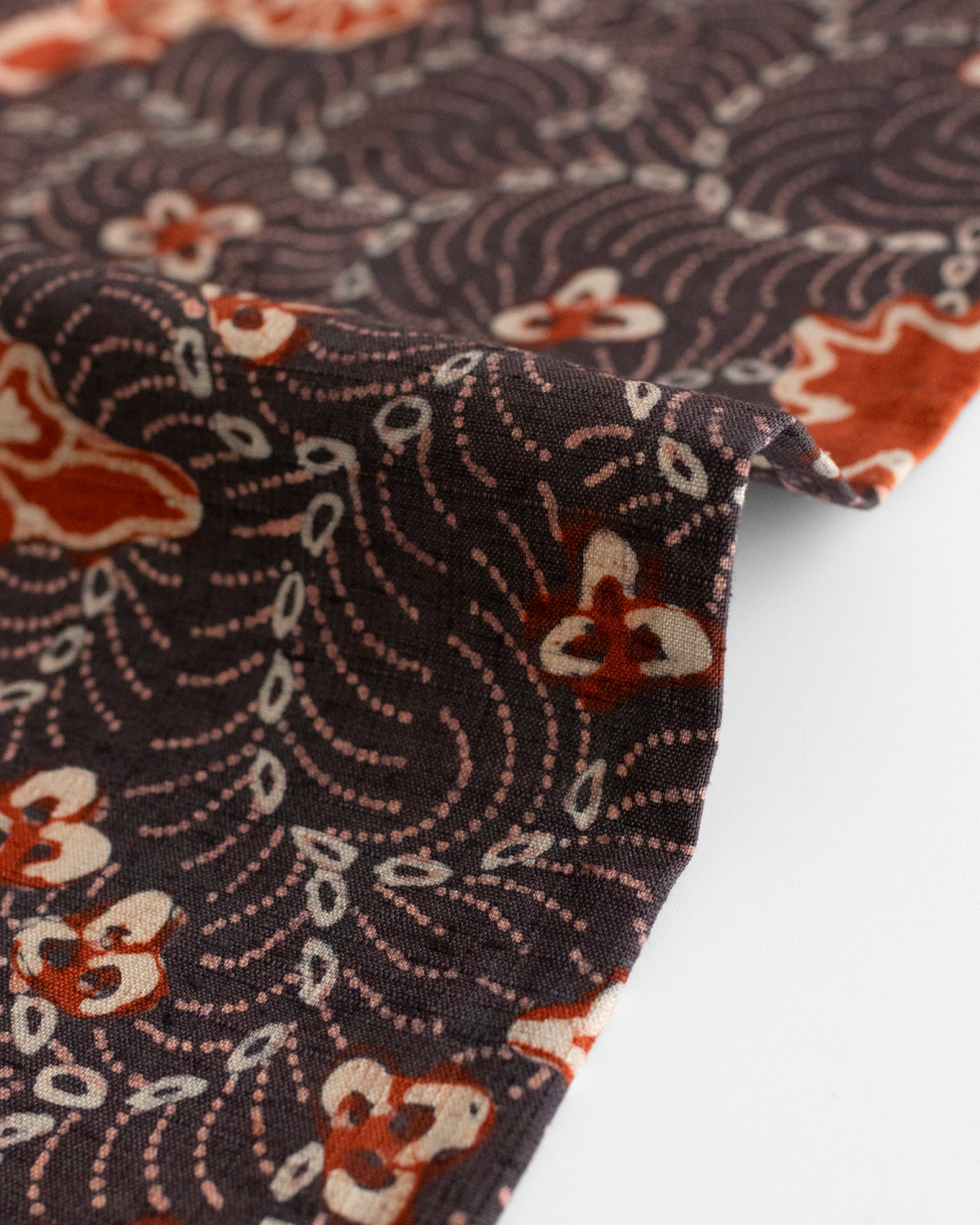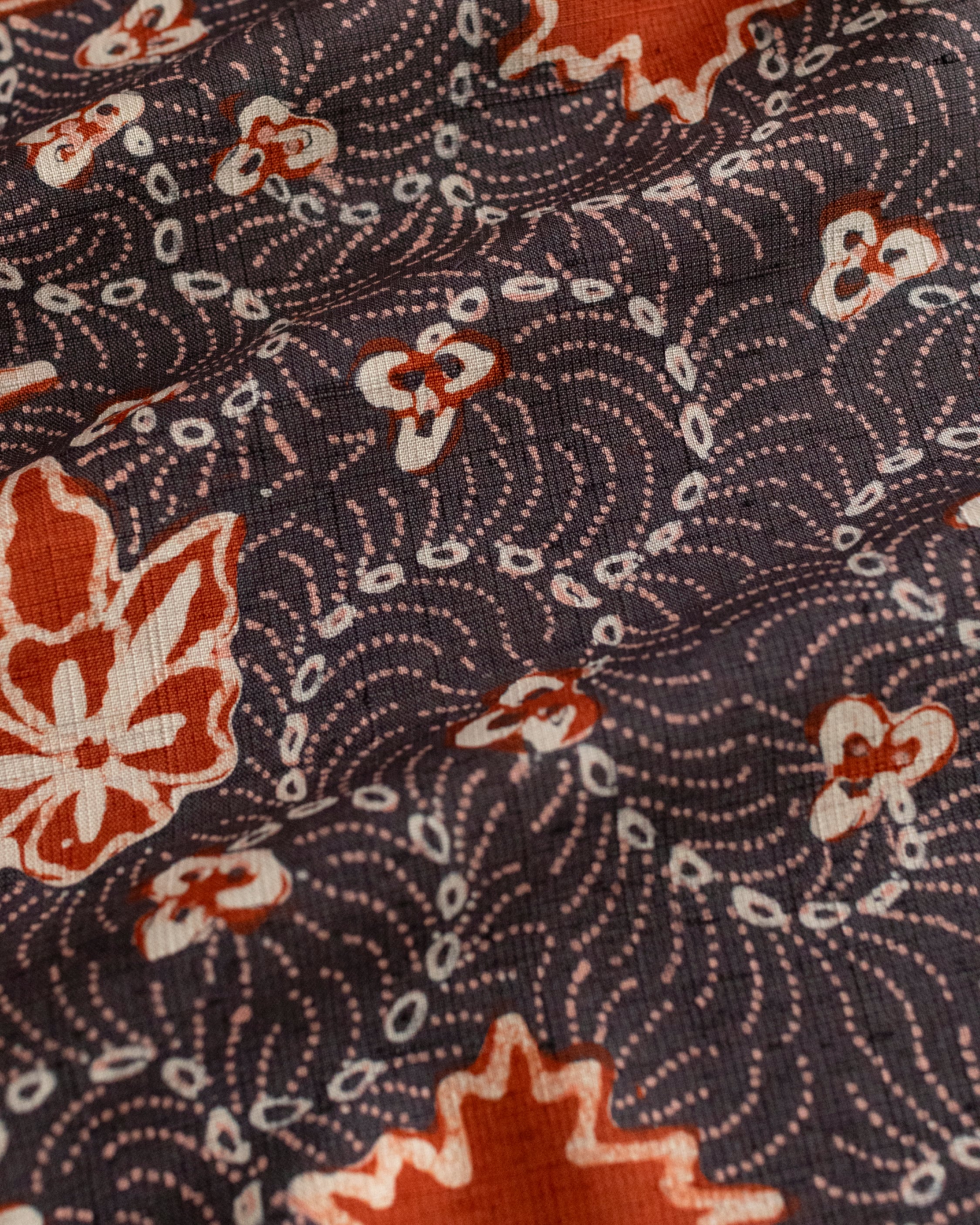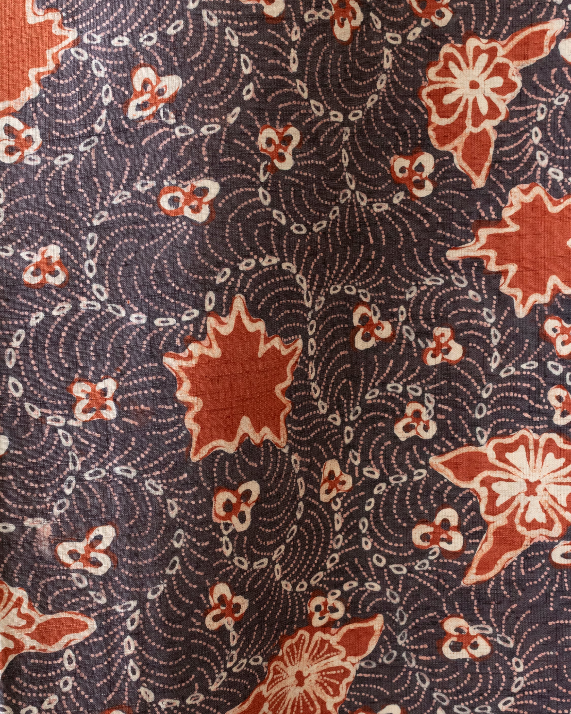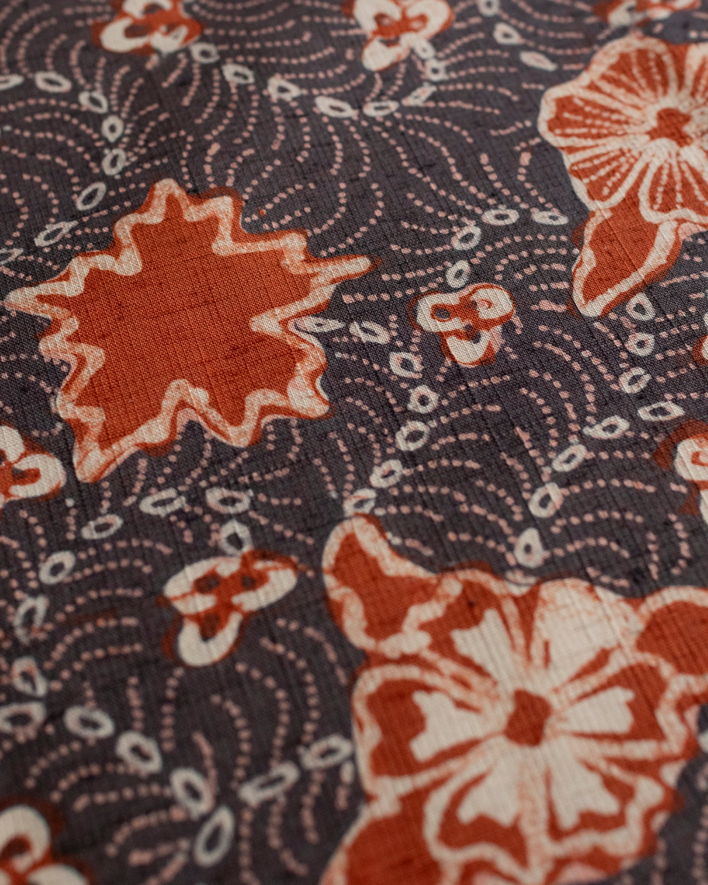 ジャワ更紗の模様の色 赤丹(強い赤系の色)、石竹色(明るい灰みの赤紫系の色)、胡粉色(黄系の色)