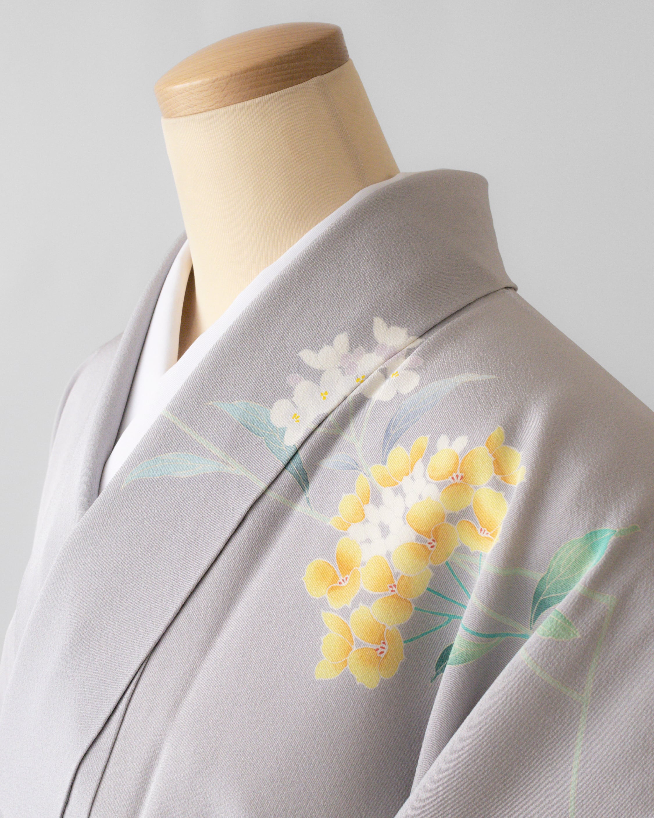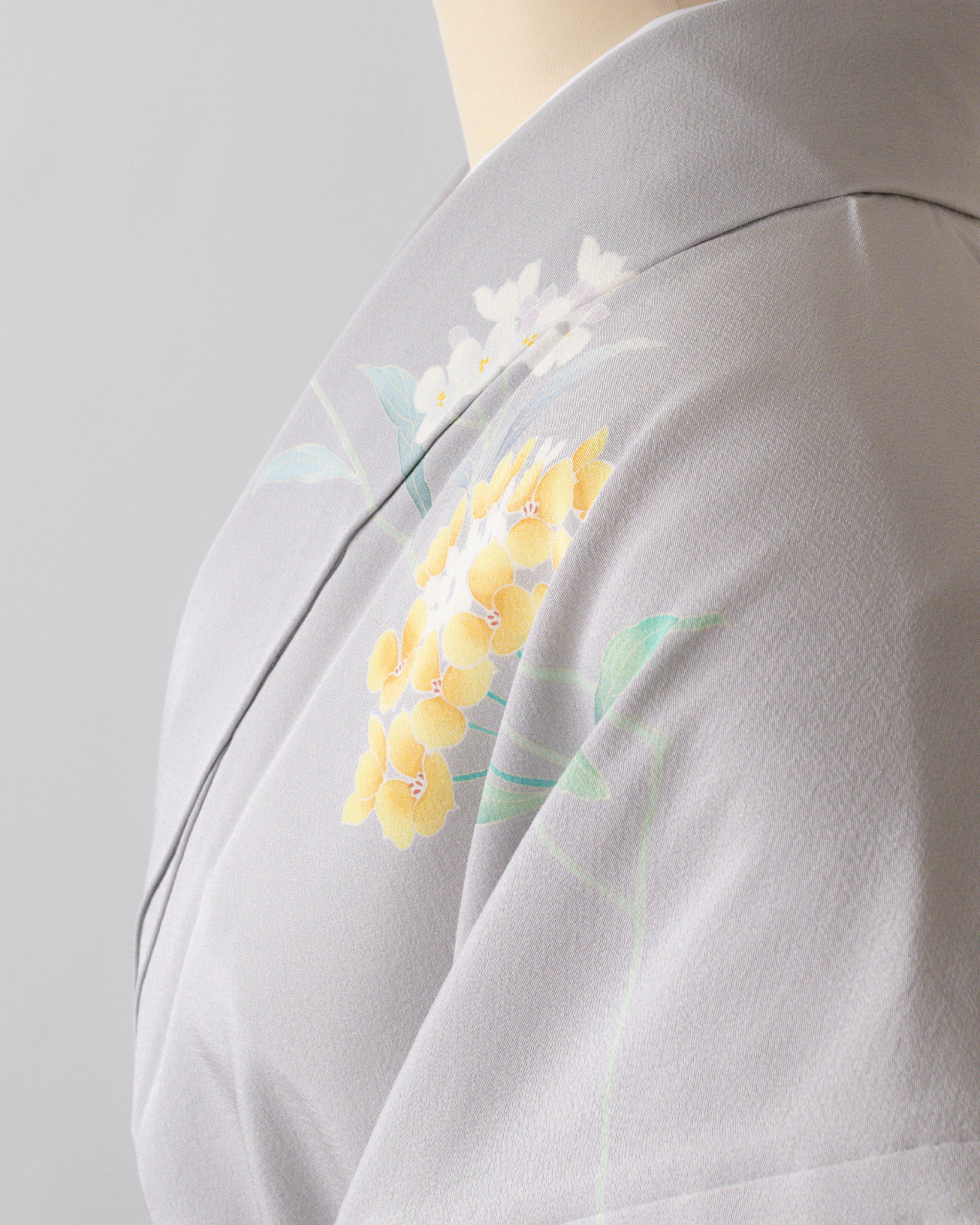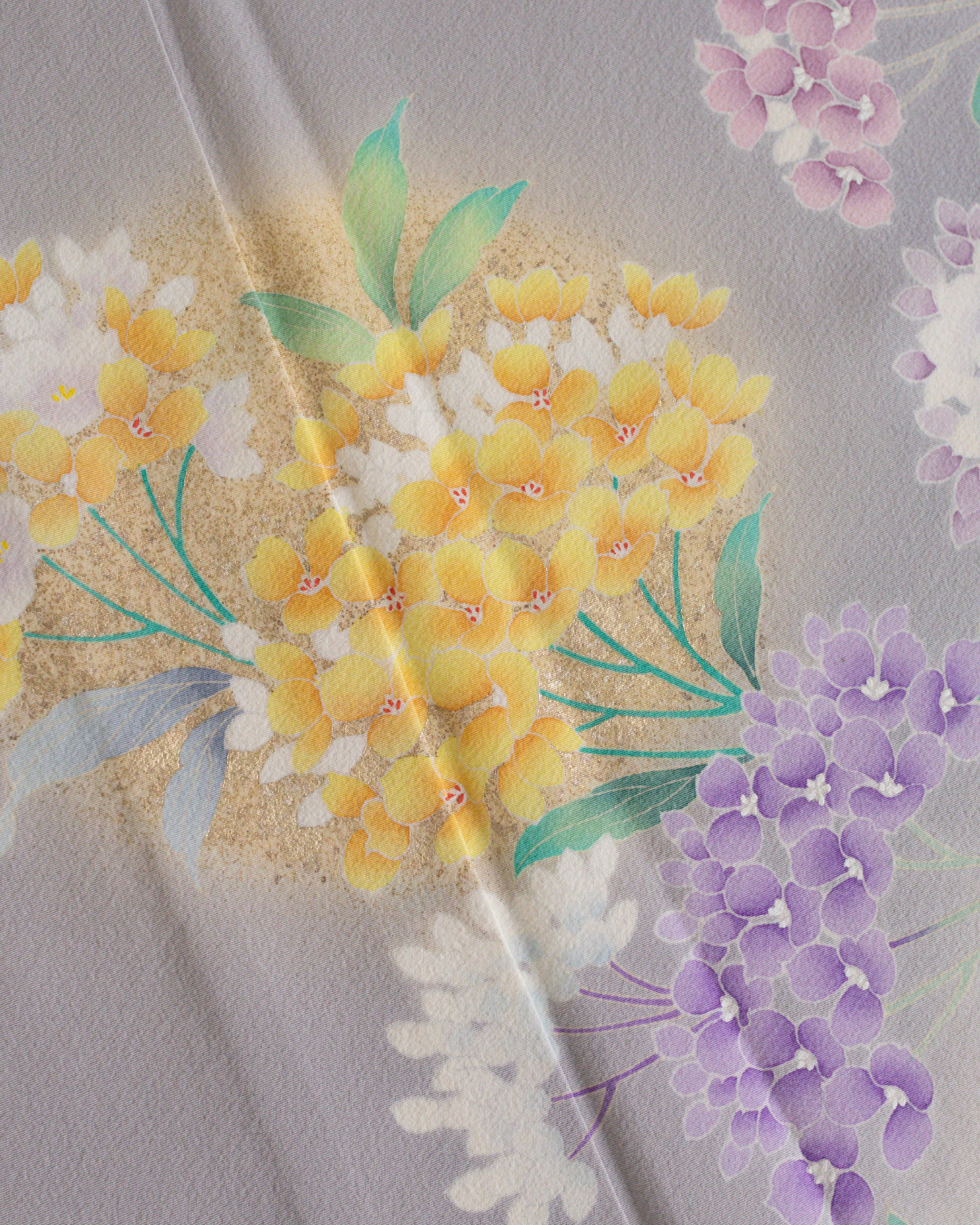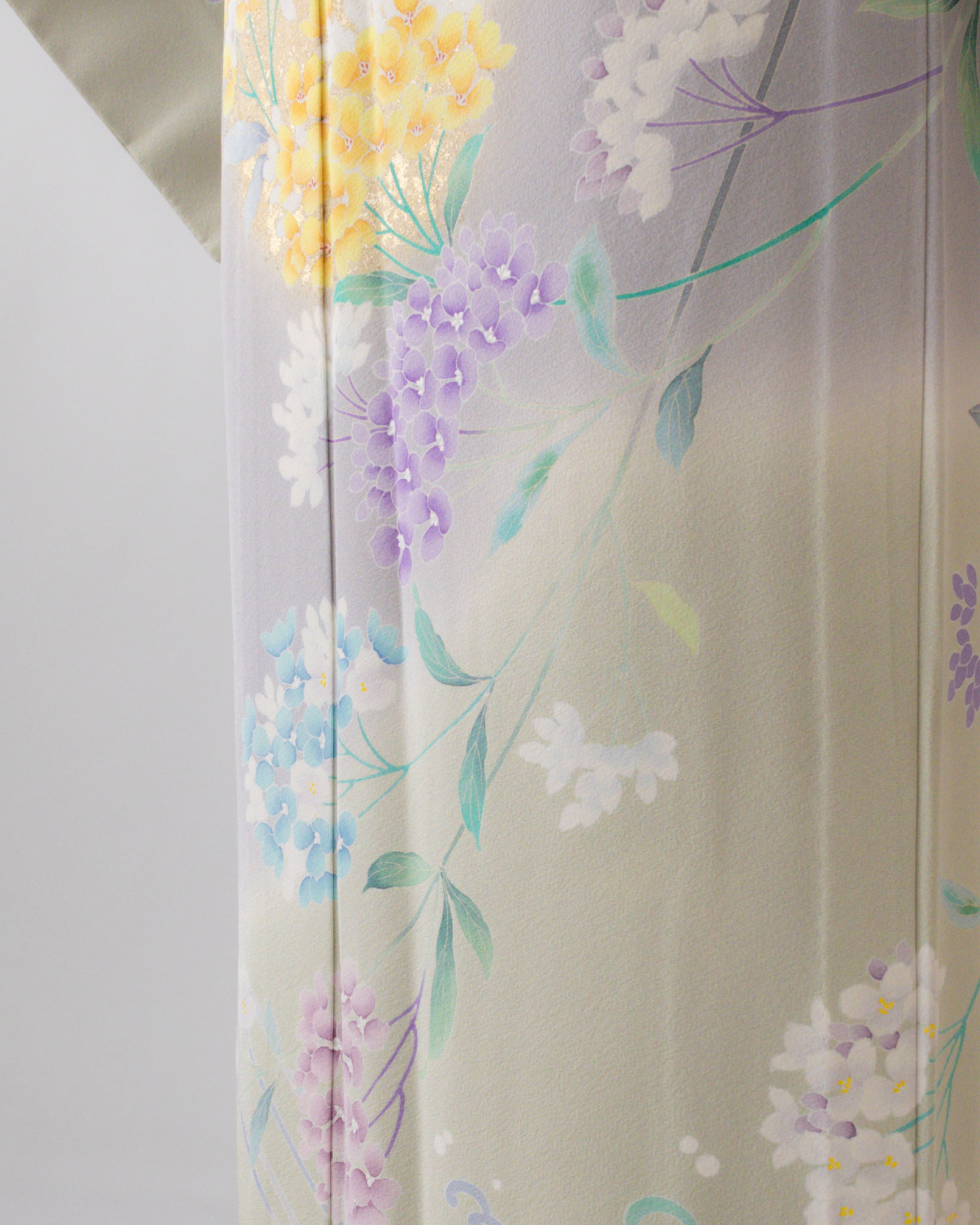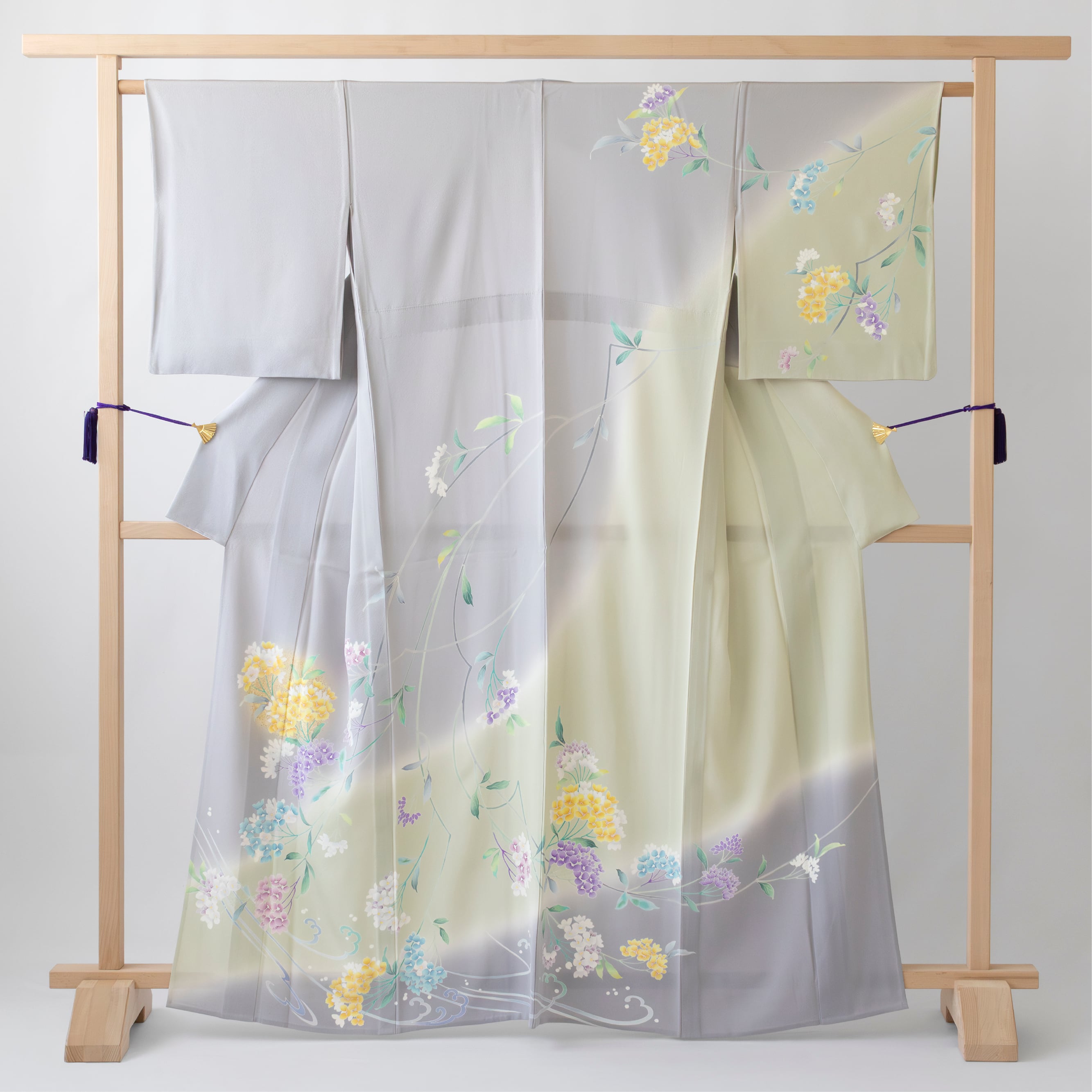 染め分けの色 桔梗鼠(灰色い青紫系の色)、若芽色(明るい灰みの黄緑系の色)
