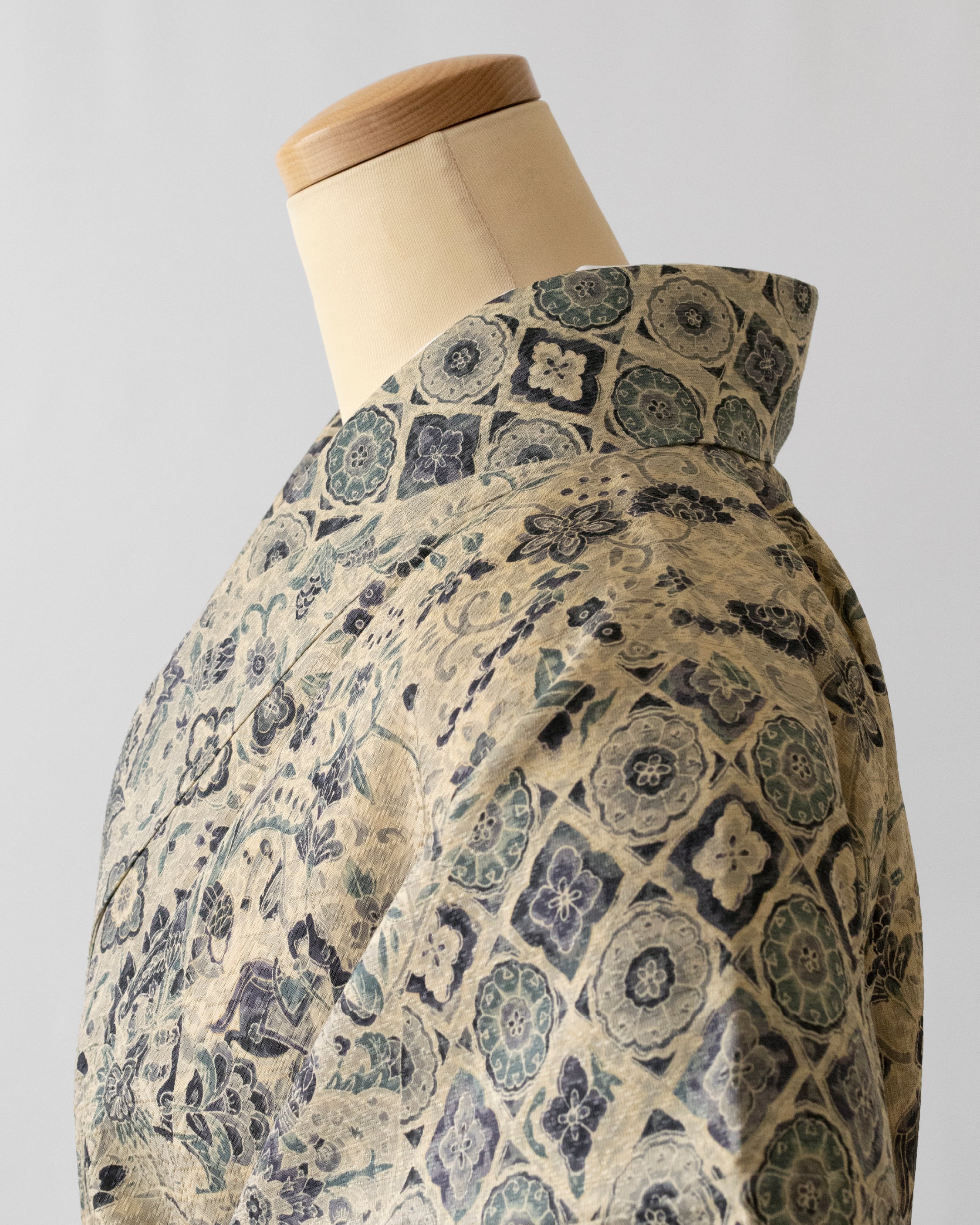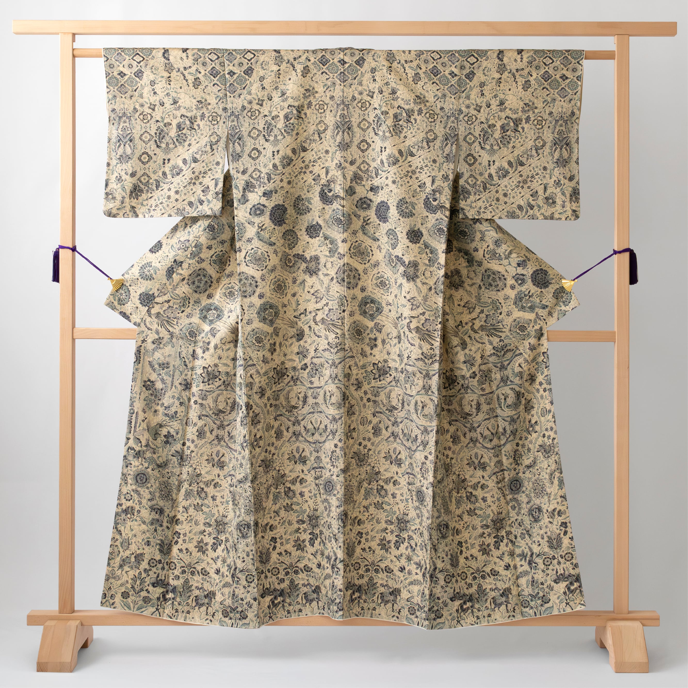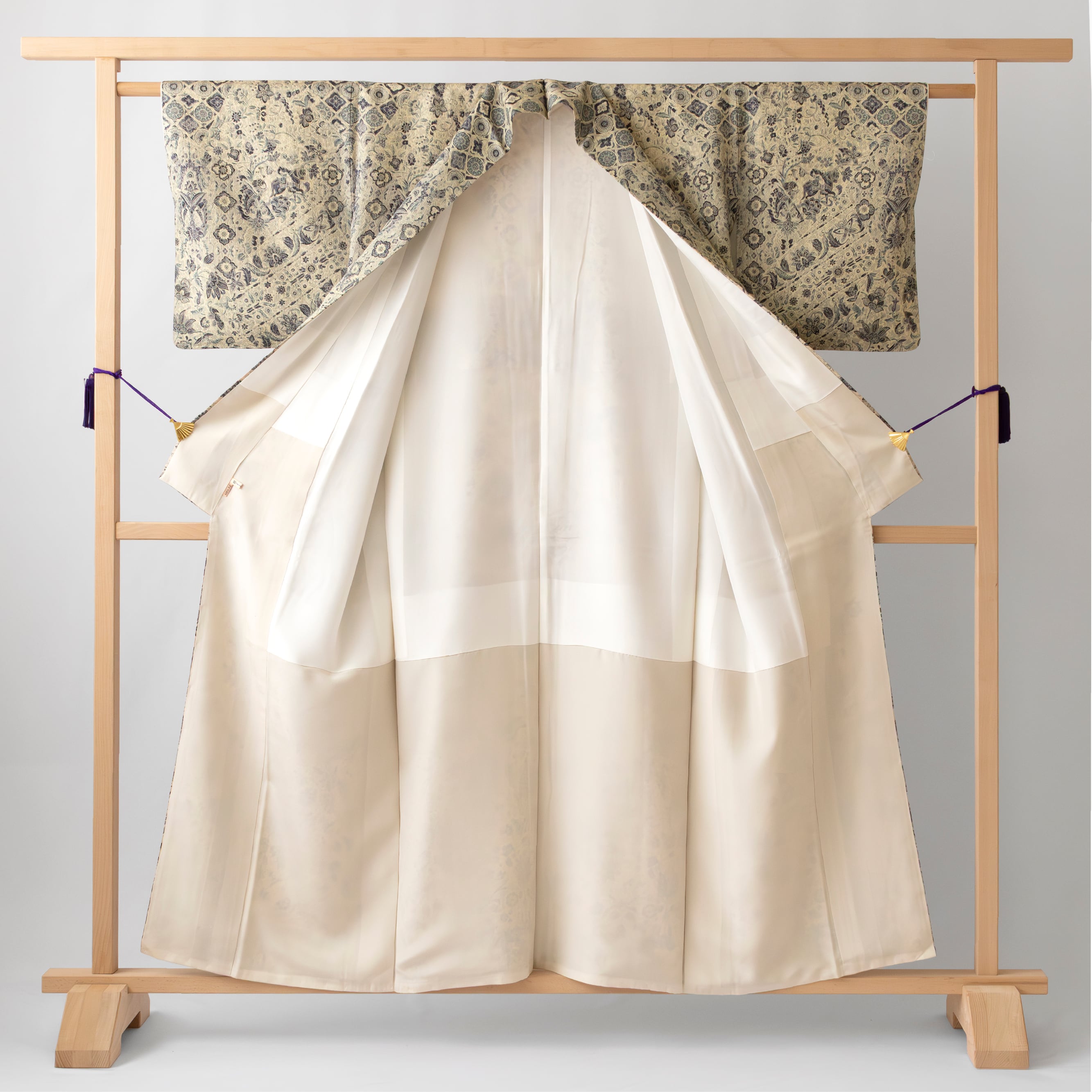 地色 やや明るい桔梗鼠(少し紫がかった灰色)、練色(やや灰色い黄系の色)