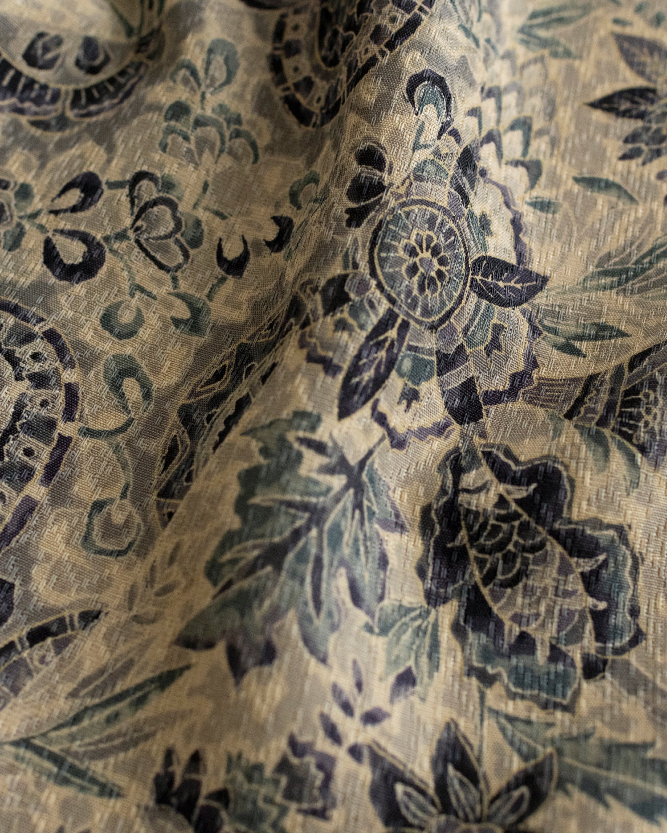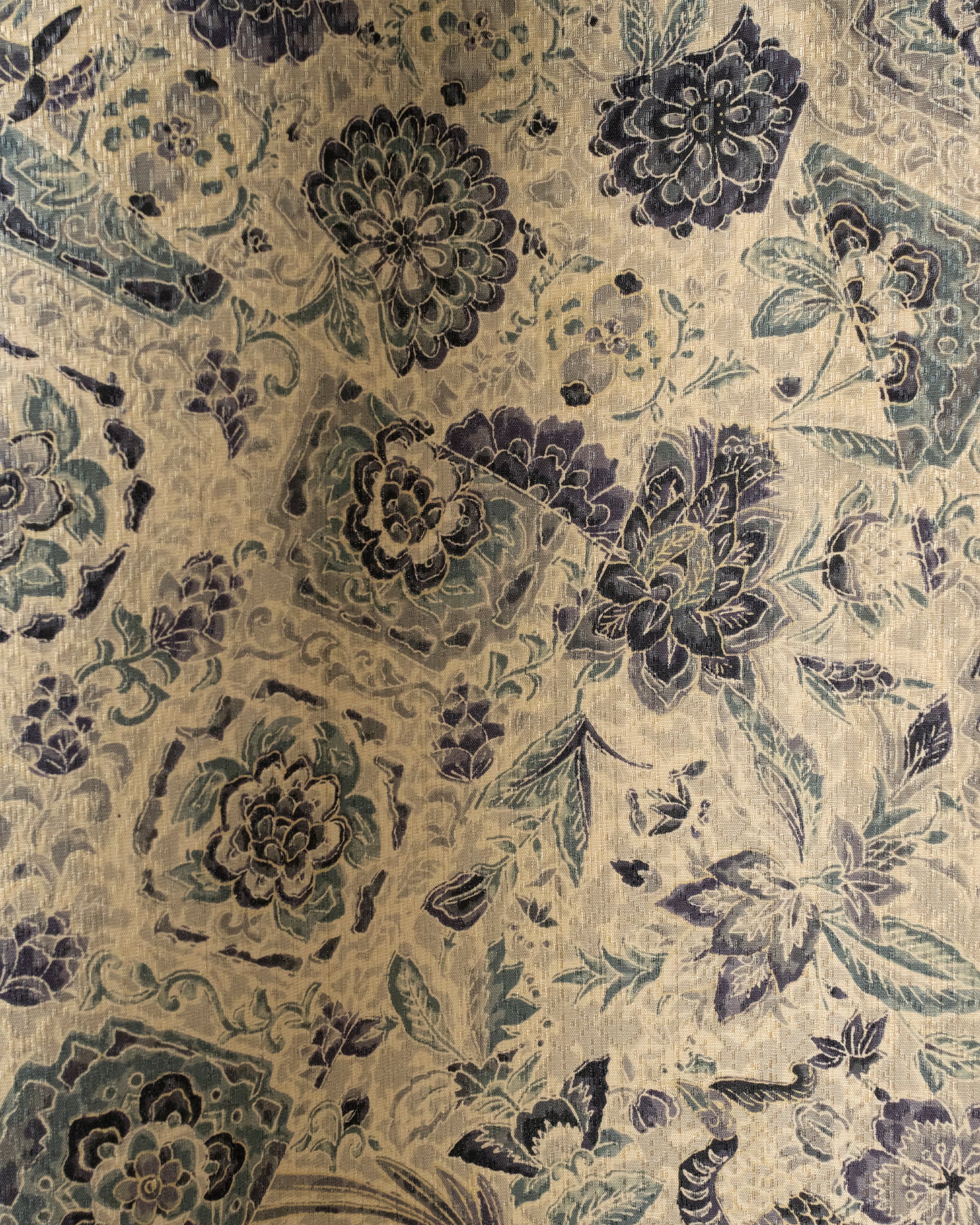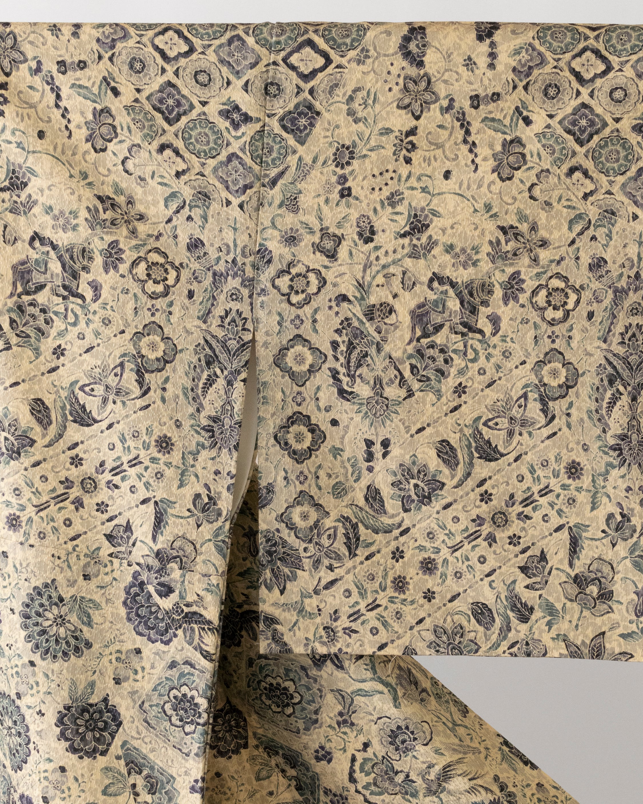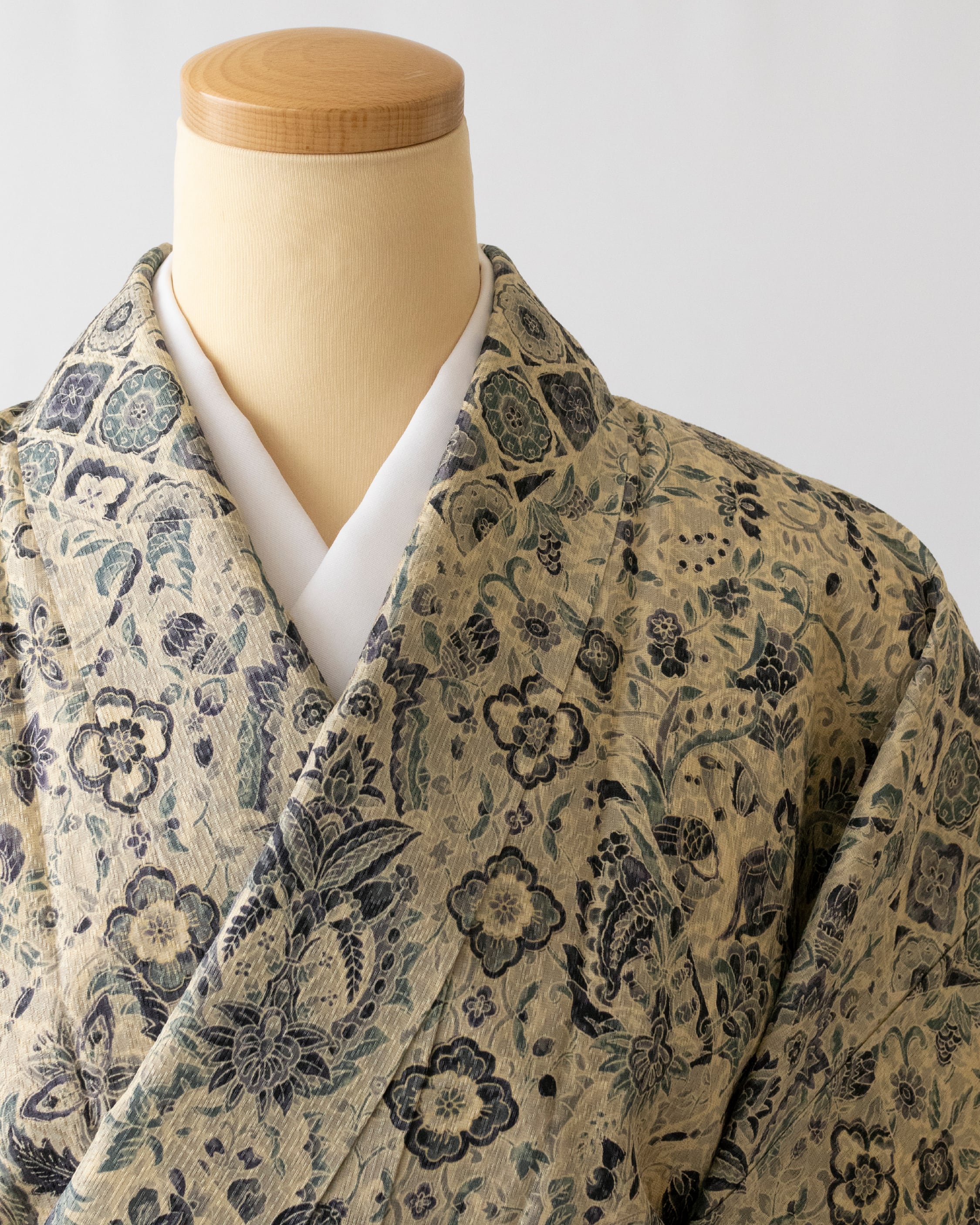 地色 やや明るい桔梗鼠(少し紫がかった灰色)、練色(やや灰色い黄系の色)