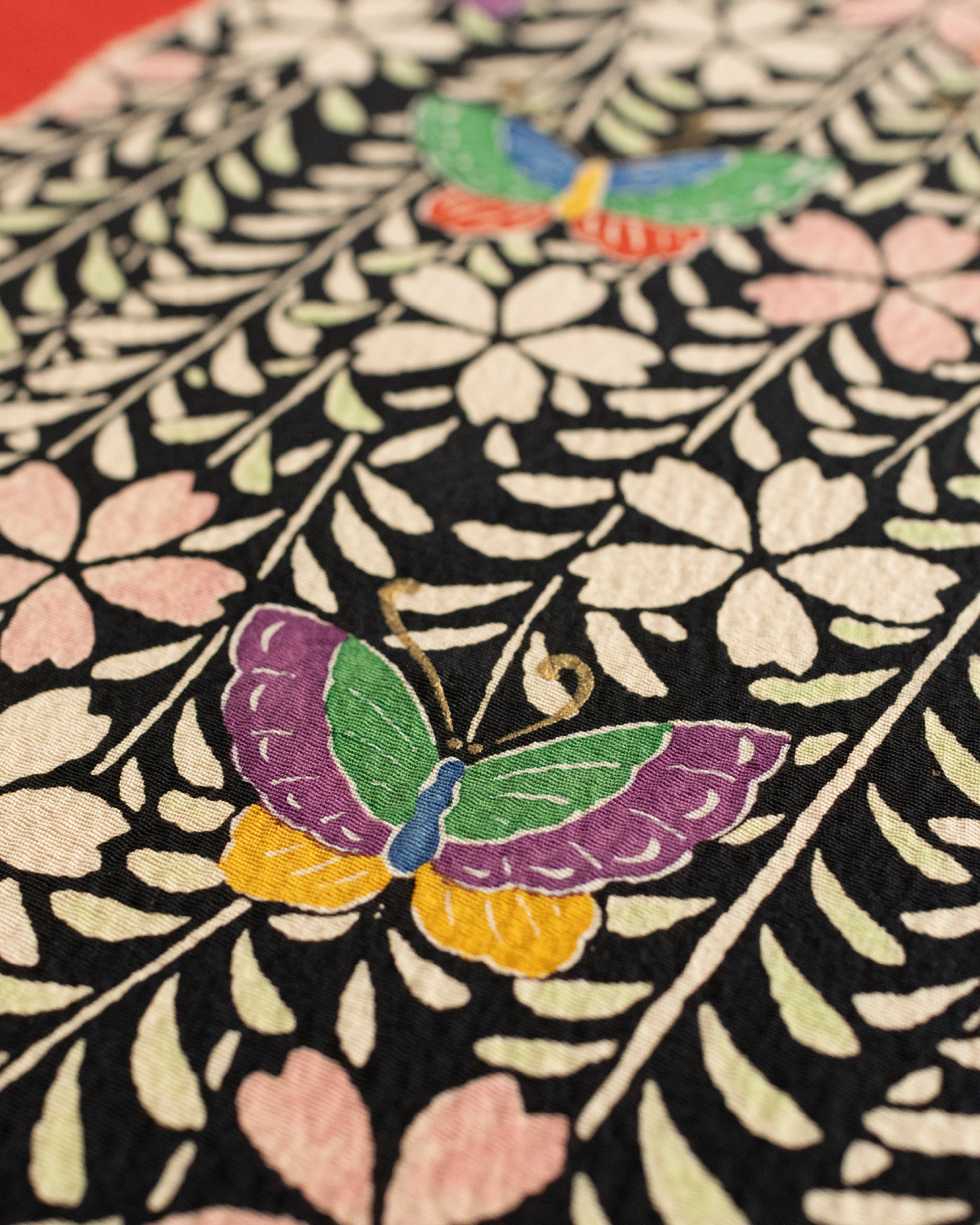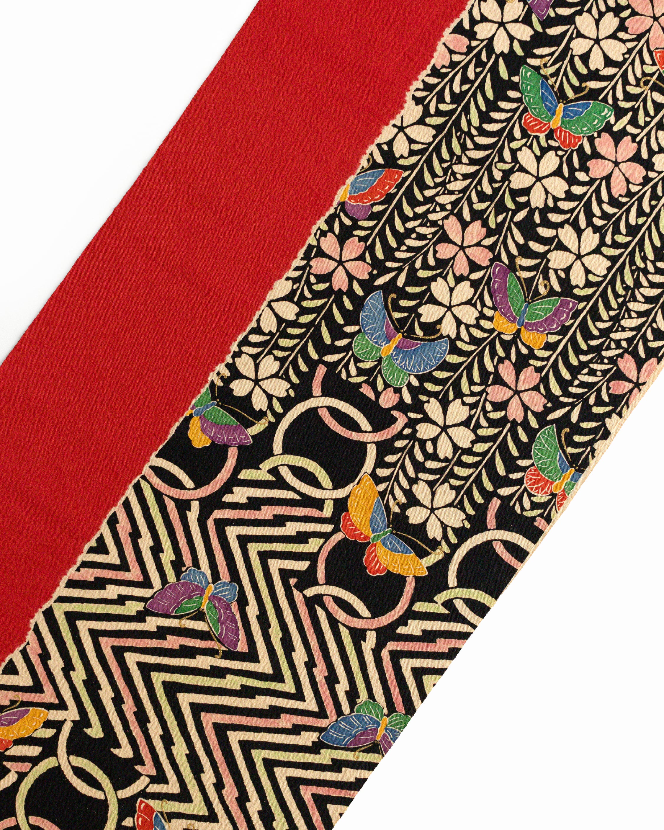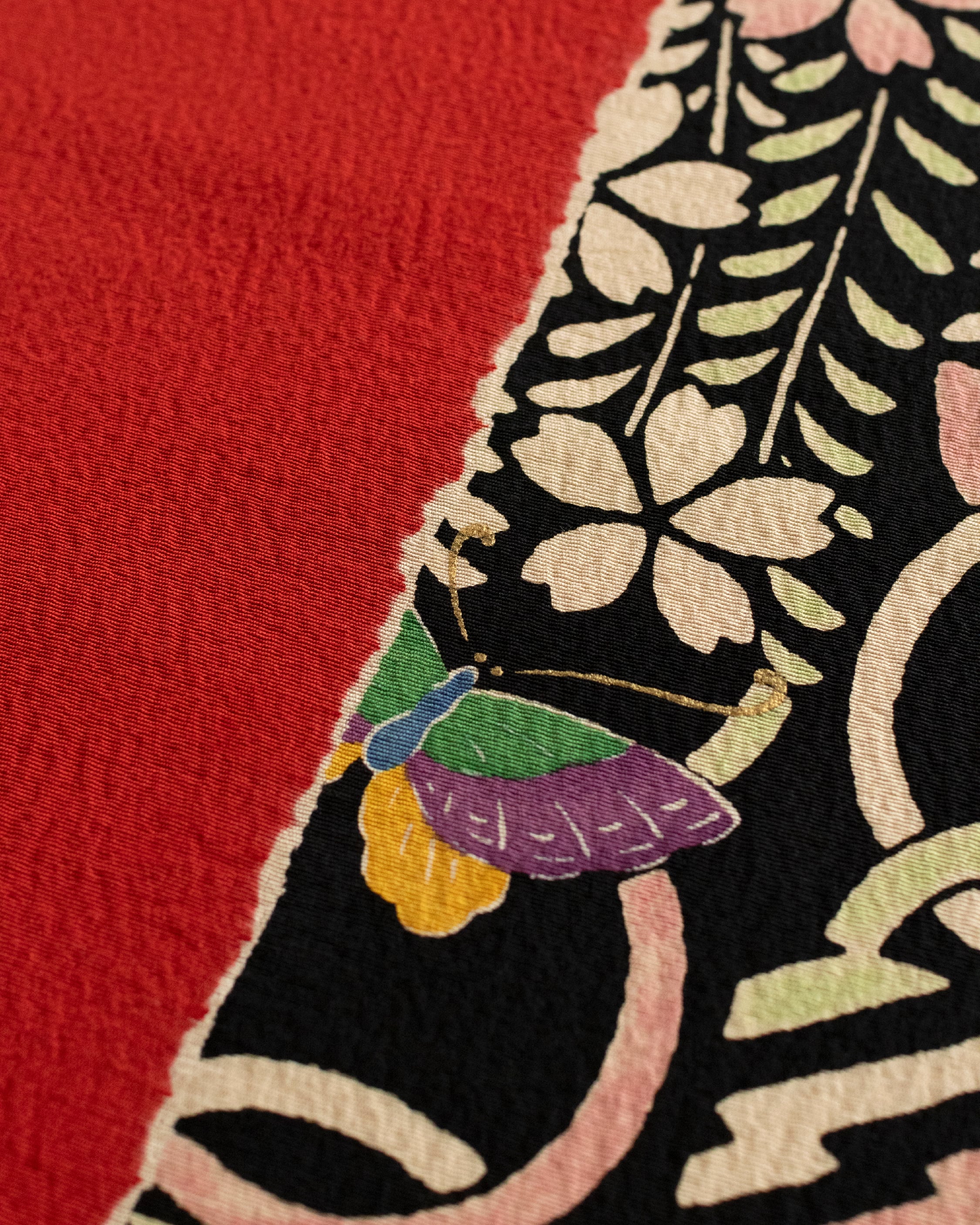 染め分けの色 茜色(深い赤系の色)、暗黒色(深い黒色)