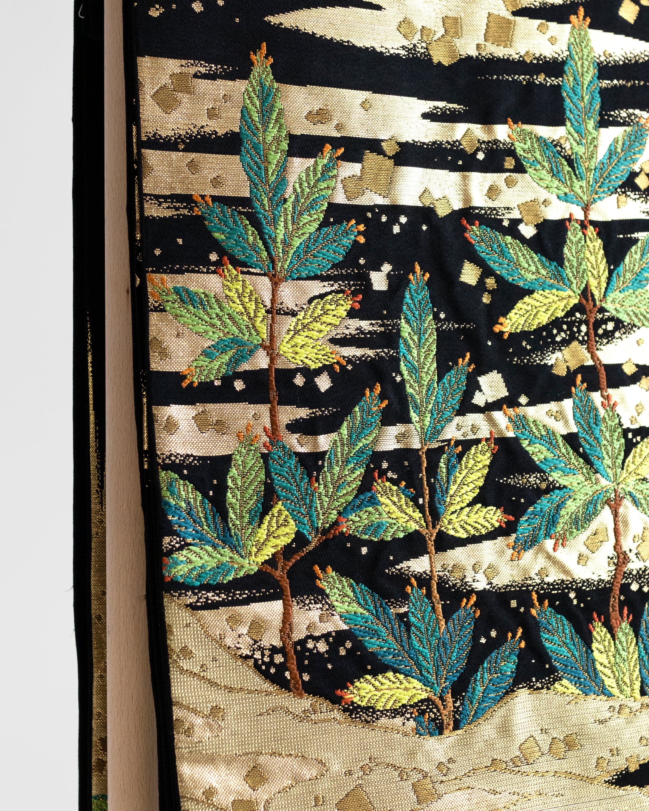 松という格調高いお柄をここまで潔く表現し、なおかつゴージャスな雰囲気を感じる帯は龍村さんだからこそお作りになれる素晴らしい帯となっております。