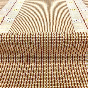 こちらの帯でしたら、カジュアルな雰囲気でお召いただけます。紬のお着物でしたら、無地のお着物もよろしいですし、少し琉球の雰囲気のあるお着物にも相性は抜群ですね。あとは浴衣の時期には浴衣や夏紬にお召になるのも素敵ですね。