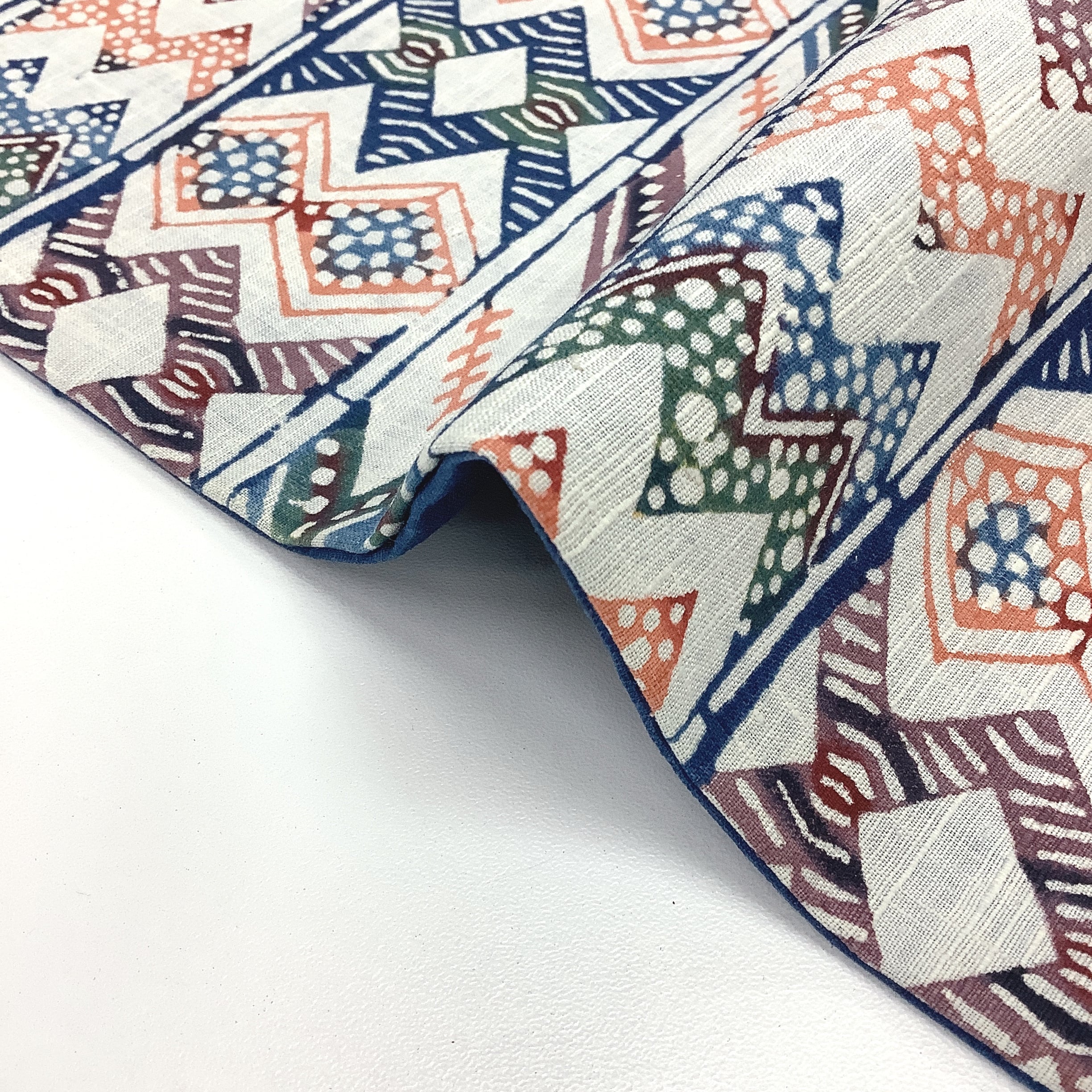 どことなく、琉球地方の雰囲気を感じられる型絵染のお柄には少し楽しい雰囲気も感じますね。